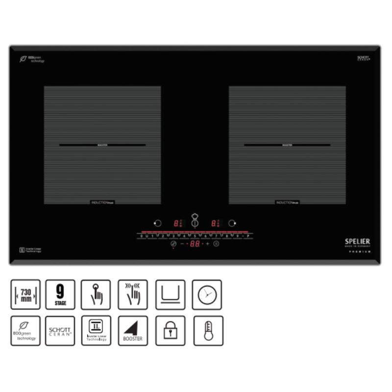 - Hai vùng nấu cảm ứng từ có công suất 2300W mỗi vùng, giúp nấu ăn nhanh chóng và hiệu quả hơn, tiết kiệm thời gian đáng kể, đồng thời cho phép nấu nhiều món cùng lúc mà vẫn đảm bảo chất lượng món ăn.