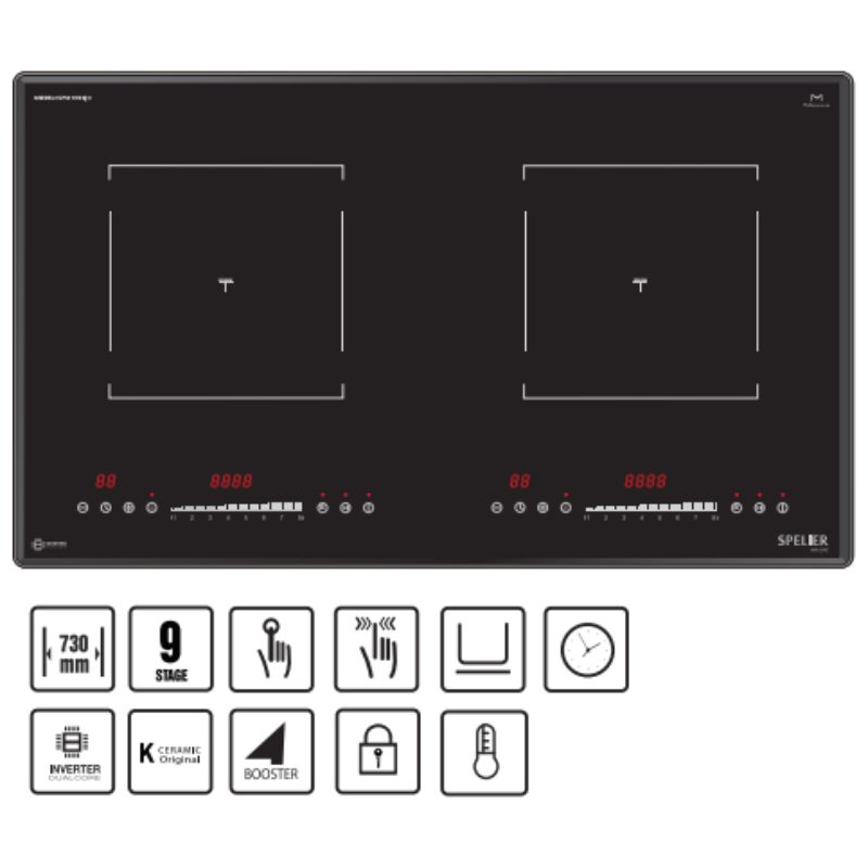 Bếp từ đôi Spelier SPM 989QV lắp âm được chế tạo từ những linh kiện chất lượng cao theo tiêu chuẩn Châu Âu và lắp ráp trên dây chuyền công nghệ tiên tiến, đảm bảo an toàn và hiệu suất tối ưu cho sản phẩm.